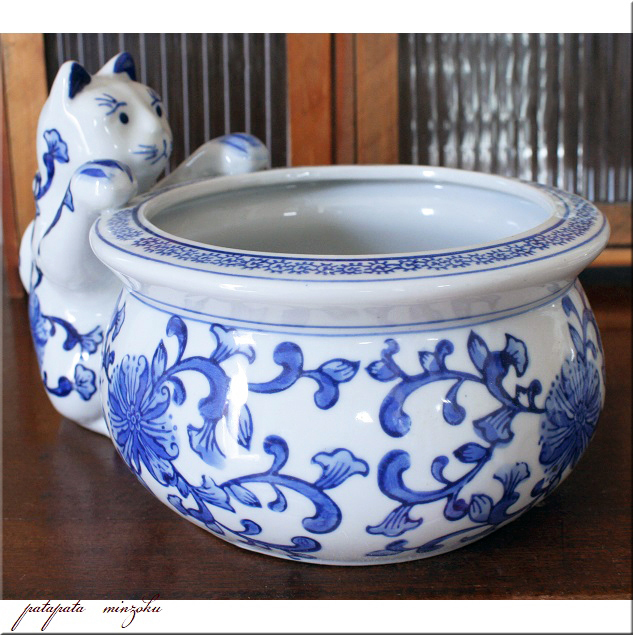 陶器製 猫の水鉢 金魚鉢 鉢 睡蓮鉢 プランター 陶器鉢 魚缶 小物入れ 置物 オブジェ ネコ ねこ キャット