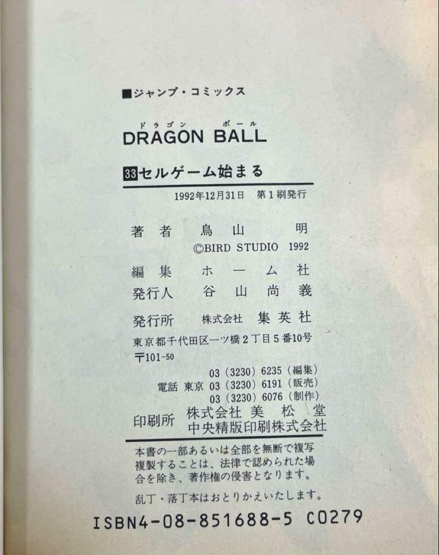 鳥山明先生の「ドラゴンボール」33巻、貴重な初版本です!
