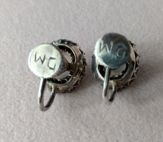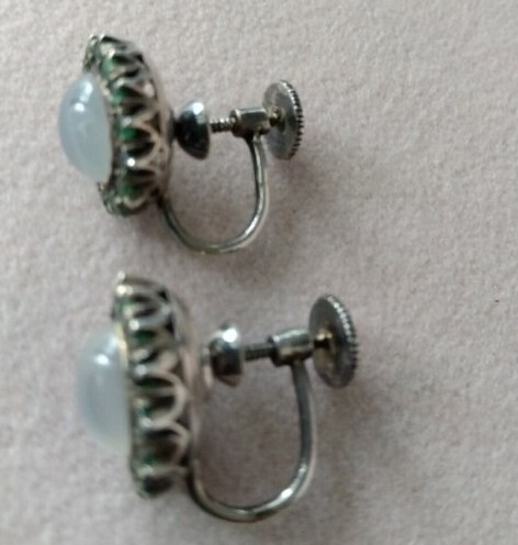 アンティークの古いお品につき、一個のイヤリングの留め具が緩みがあり修理が必要な状態です。