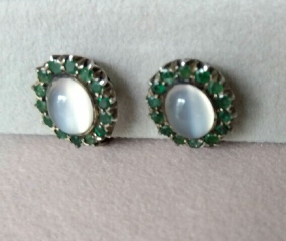 Product name: ★宝石★ムーンストーン★エメラルド★カボション★イヤリング★