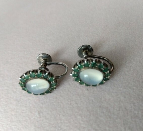 ★宝石★ムーンストーン★エメラルド★カボション★イヤリング★
