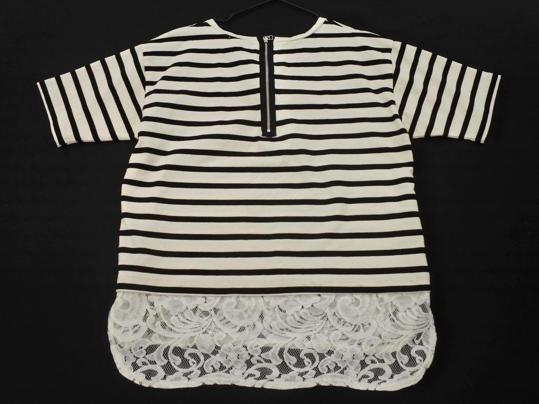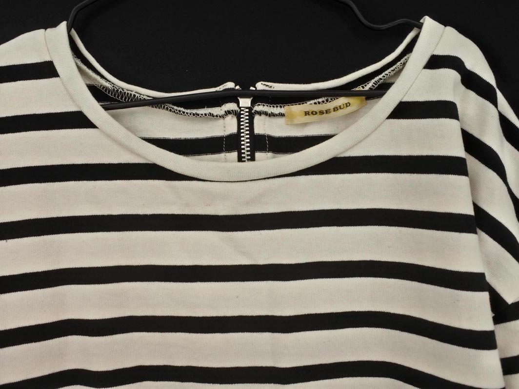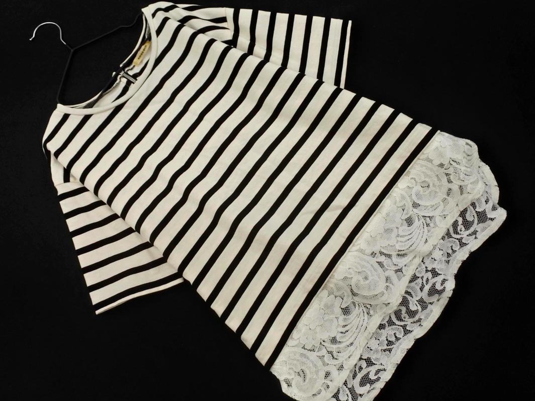 Product name: ネコポスOK ROSE BUD ローズバッド レース 切替 ボーダー カットソー sizeF/白x黒 ■◆ ☆ ffa3 レディース