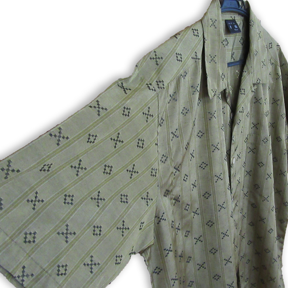 【商品の状態】 古着ですが目立つ傷や汚れはなく、非常に良好な状態。既製品とは異なる温もりのある風合いをお楽しみください。  【おすすめコーディネート】  南国リゾートスタイル 白のリネンパンツやベージュのショートパンツと合わせ、洗練されたリゾートコーデに。