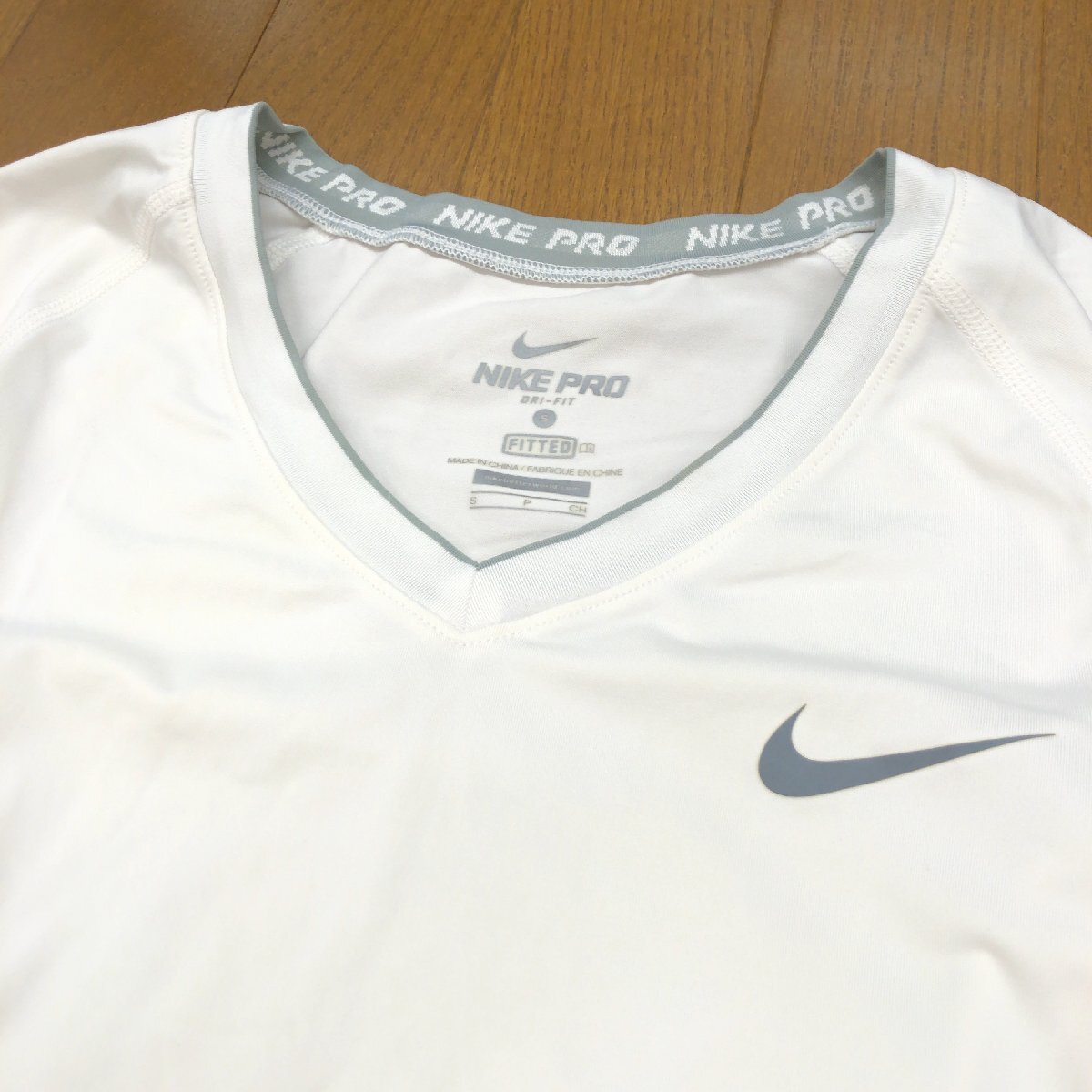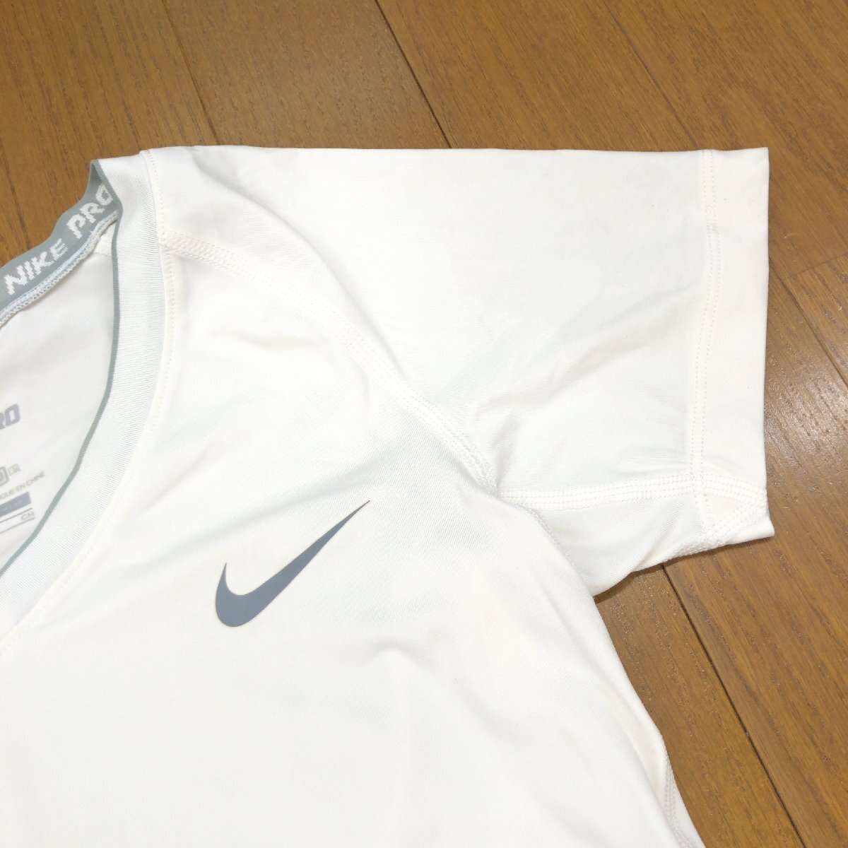 Product name: NIKE PRO ナイキ 吸水速乾 ドライ ストレッチ トレーニング コンプレッションシャツ S 白 オフホワイト 半袖 Tシャツ インナー レディース