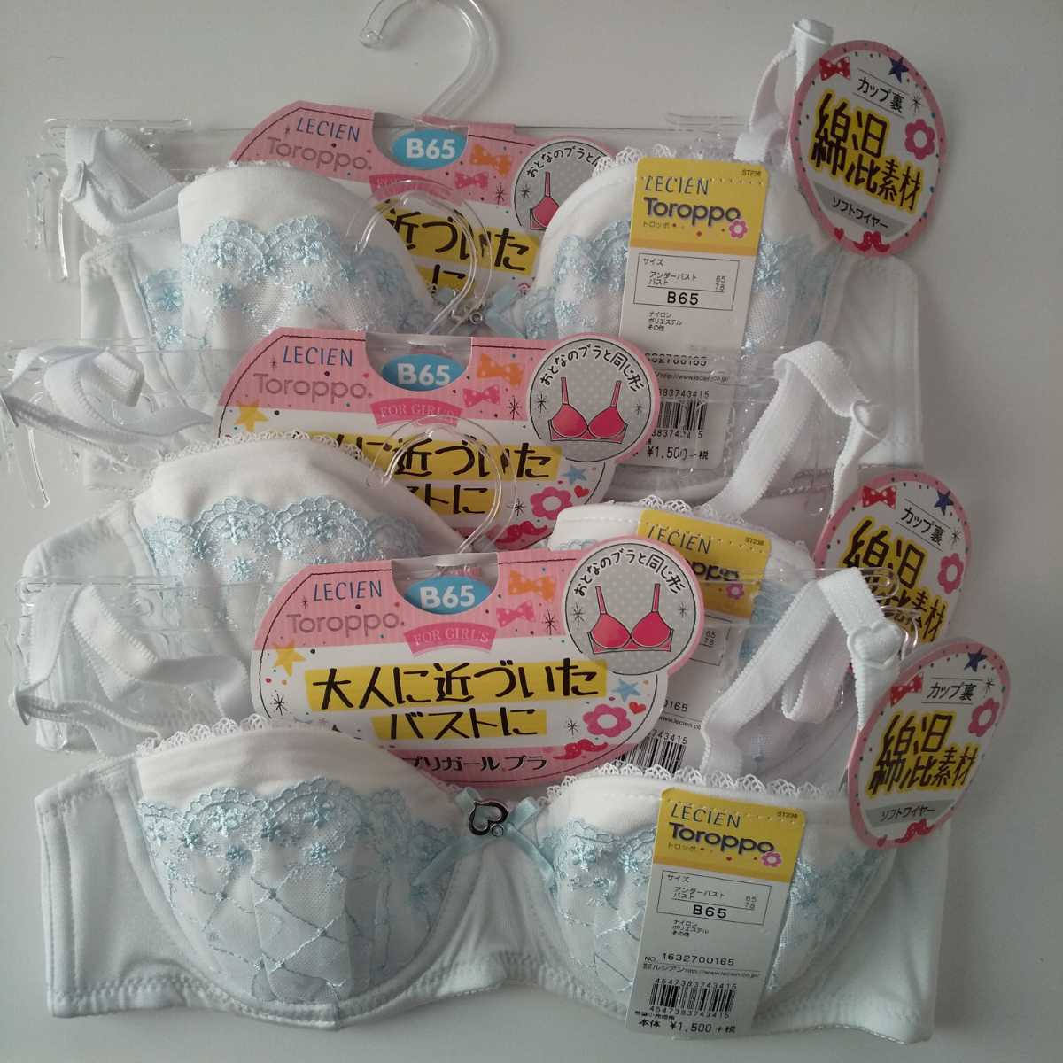 Product name: 3枚セット【新品タグ付き】B65 ルシアン LECIEN Toroppo トロッポ ジュニア プリガールブラ ブラジャー 白 小中高生 送料無料 匿名配送