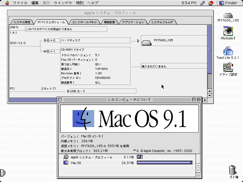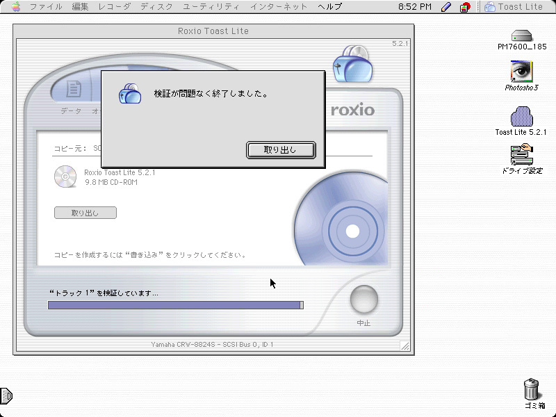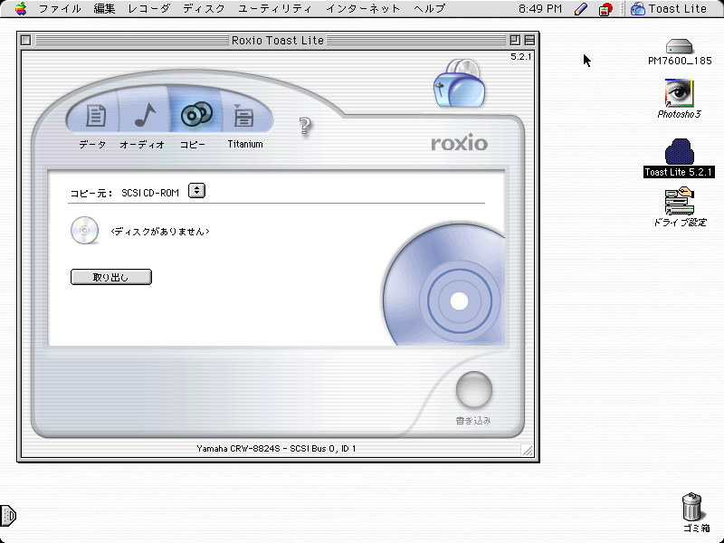 PowerBook7500 OS9.1 へ組み込み Toast5 Liteを用い