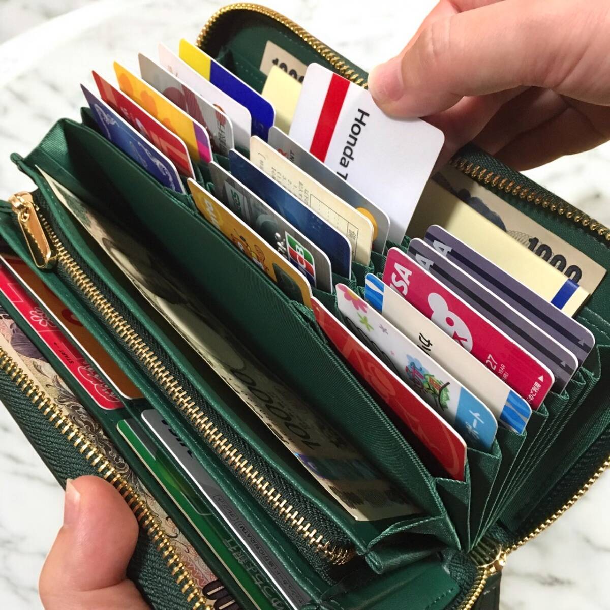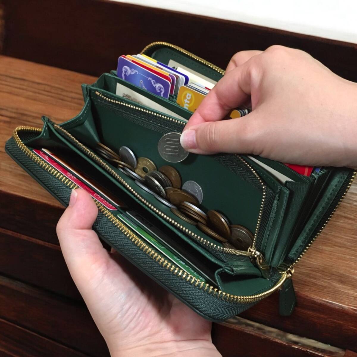 カード収容、驚きの「22枚」通帳も入るグリーンの大容量長財布