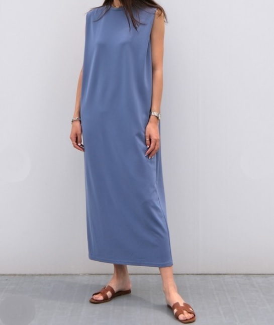 Product name: AKTE ノースリーブ立体ワンピース 13200円 フリーサイズ ブルー マキシ丈 アクテ タックショルダーカットソー 無地 ロングスカート