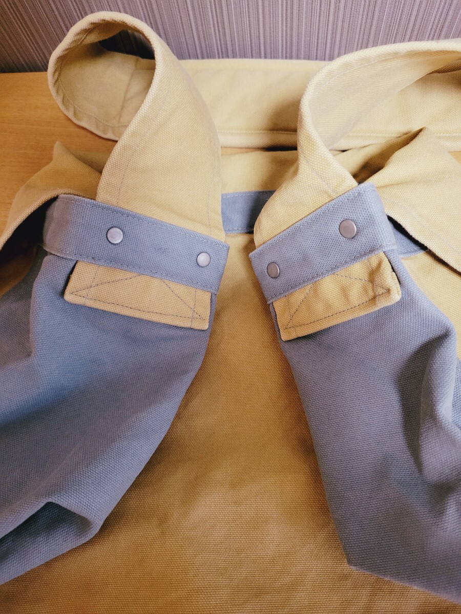 ■無地でありながら異素材を用いてツートンカラーになっておりショルダーの縫製箇所をリベットを使用し縫製はオリジナルのヴィンテージよりもさらに強度をあげる為にトリプルステッチやチェーンステッチで施している点などにヘラーズカフェの素晴らしい " 物作り " を感じます。