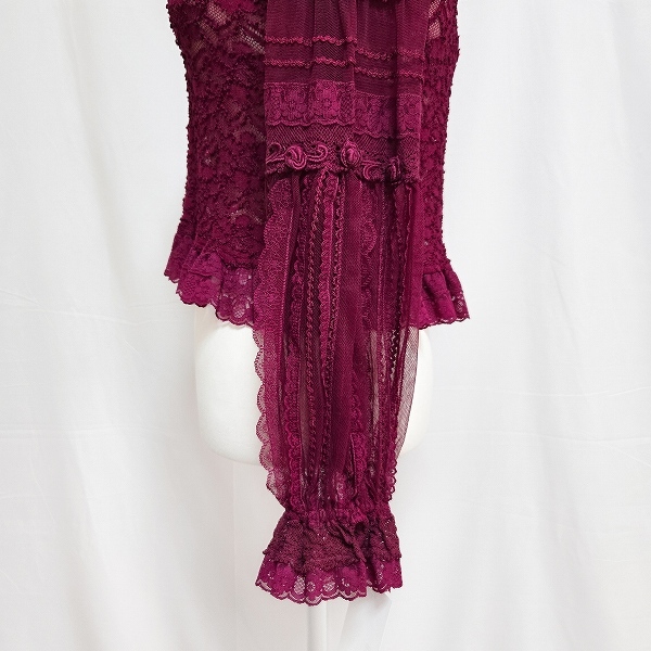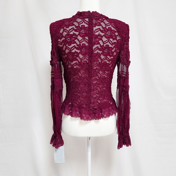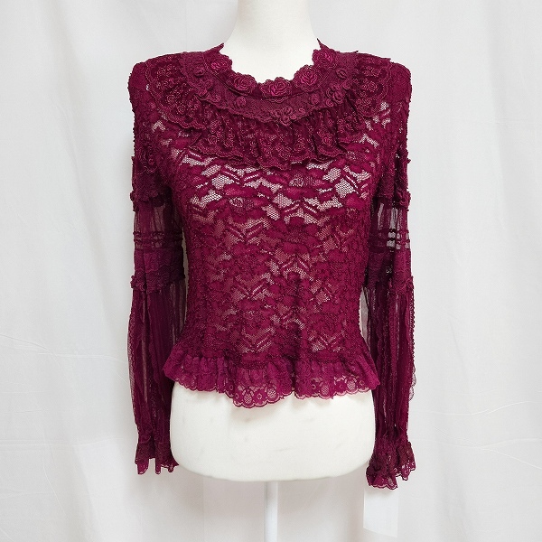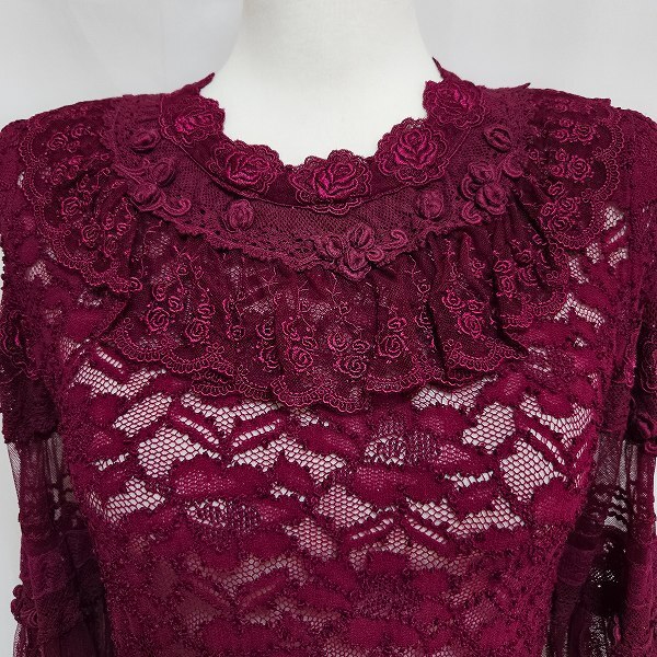 Product name: #anc ドロシー DOROTHY シャツ ブラウス ワインレッド 丸ヨーク 総レース フリル シースルー 花柄 バックジップ レディース [953123]