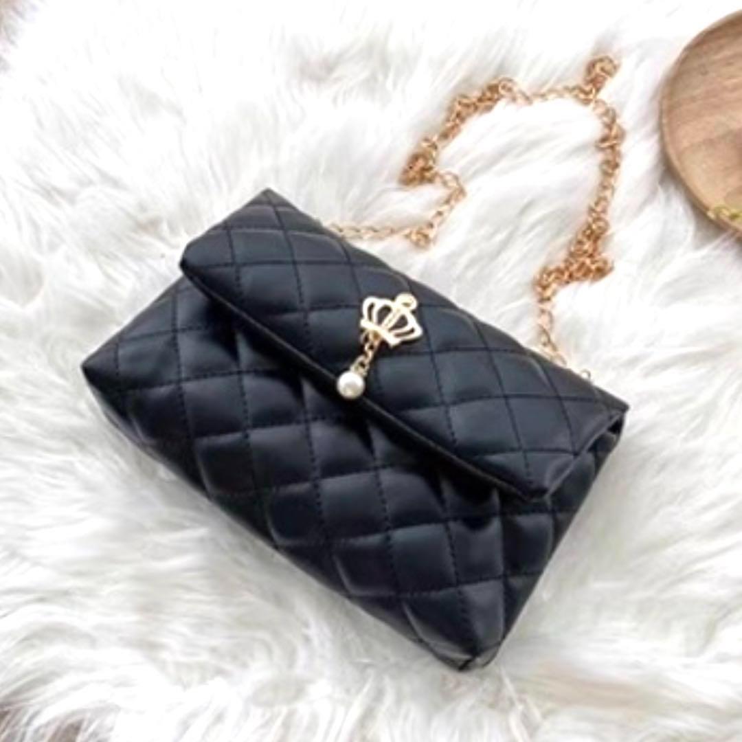 Product name: 値下げ キルティング【ブラック】フェイクパール 装飾 チェーンバッグ かわいい