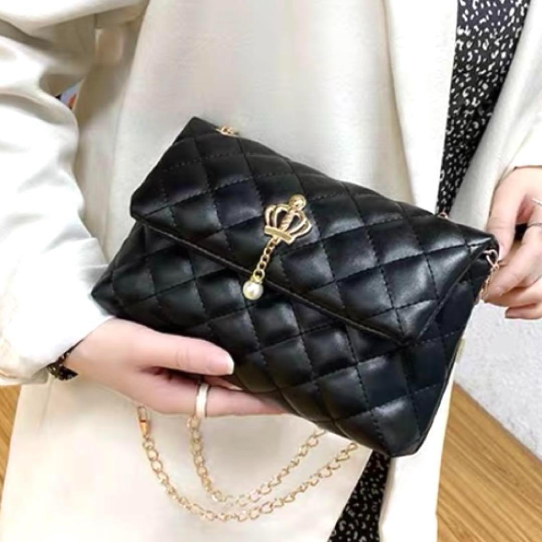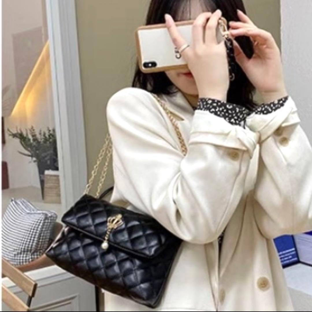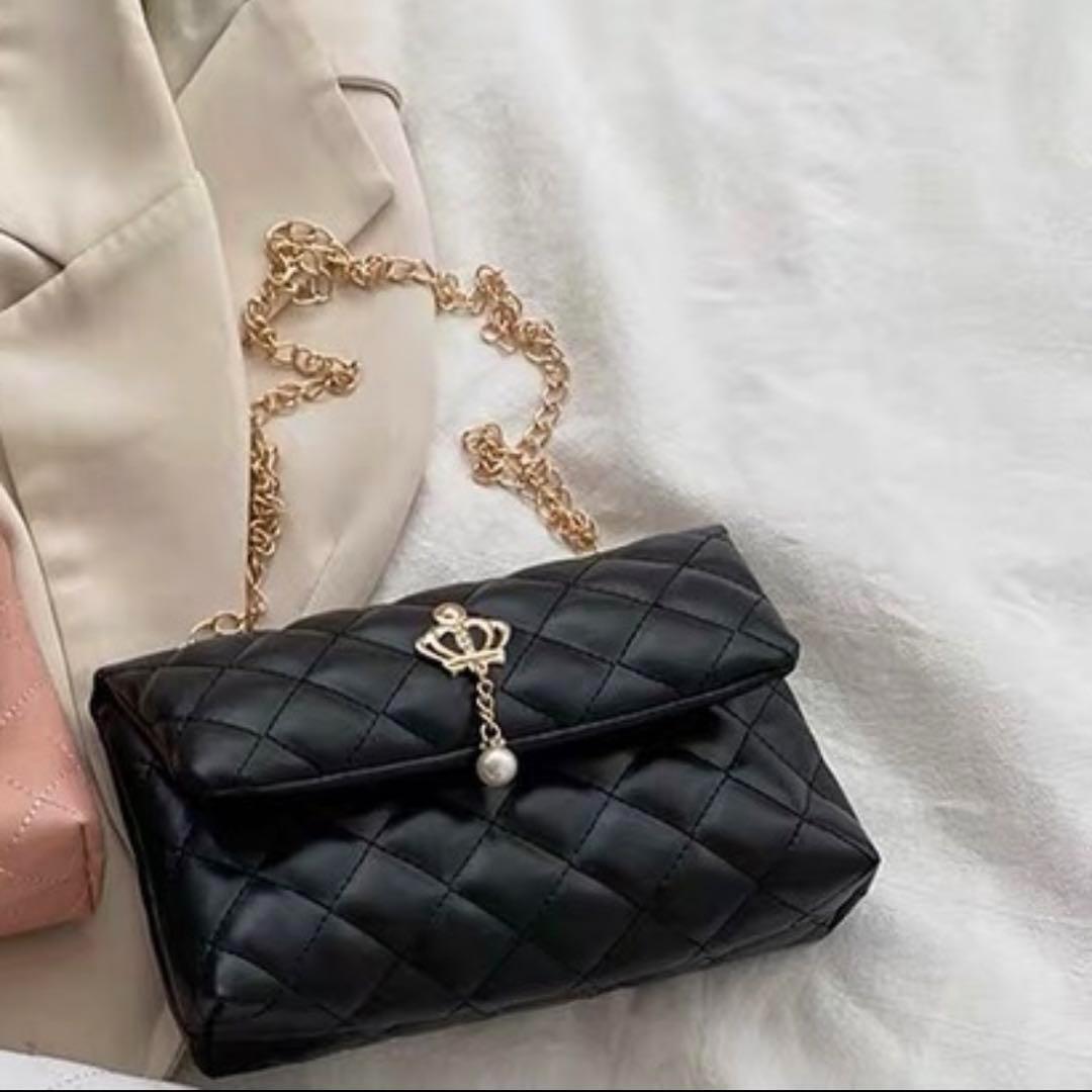 値下げ キルティング【ブラック】フェイクパール 装飾 チェーンバッグ かわいい