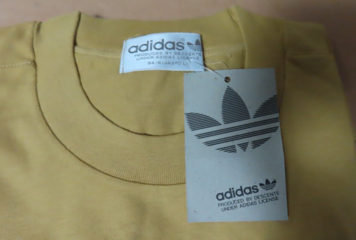 商品名〓★20-30年位昔の未使用Tシャツ■胸囲94、身長170★〓アディダス adidas/ATS-590〓黄土色 綿100%〓デサント/DESCENTE