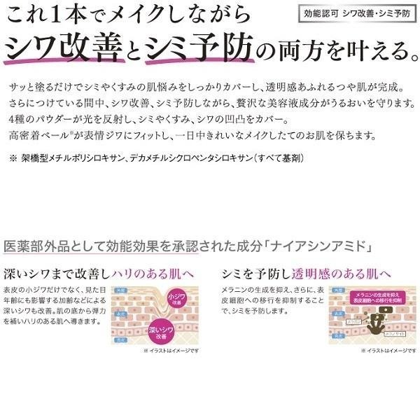 4種のパウダー+高密着ベール※1で気になる箇所をカバーし、 透明感とツヤ感が持続(※1 架橋型メチルポリシロキサン、デカメチルシクロペンタシロキサン(すべて基剤))