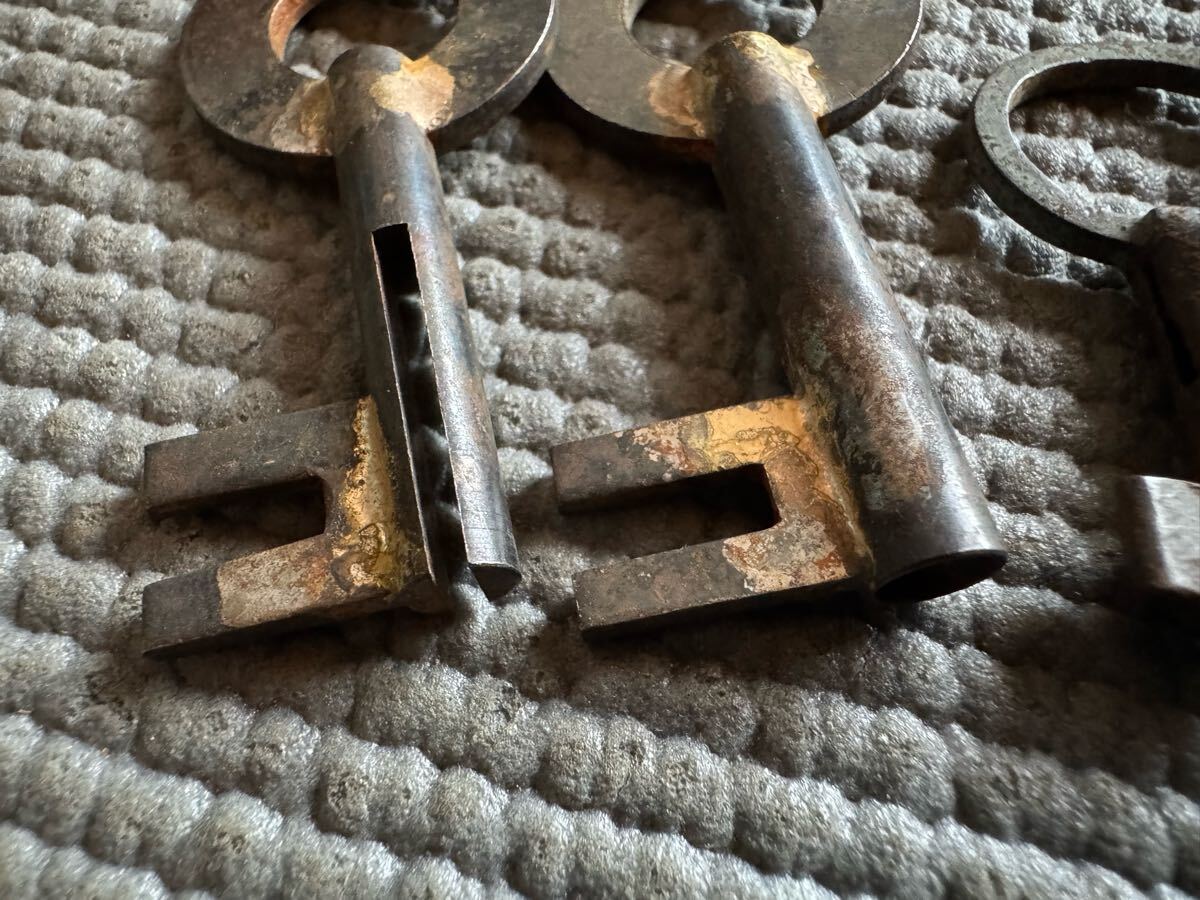 Product name: 7 倉庫片付け品 中古 レトロ 錠前 5個セット ビンテージ 箪笥 子引き出し 古道具 古鉄 時代物 カギ サビ コレクション