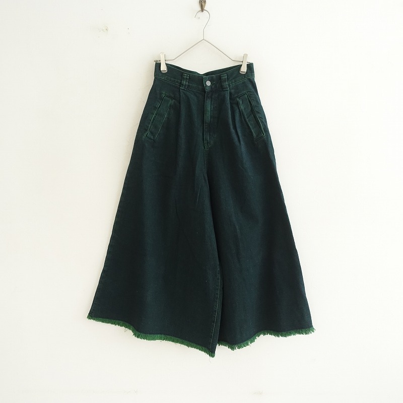 ZUCCAのオーバーダイデニムワイドパンツです。カラーはネイビー×ライトグリーンのミックスで、微ストレッチ入りのデニム地で仕立てられており、裾はフリンジになっております。ワンタック入りのワイドなシルエットになっており、フロント開口部はジップフライ仕様で、ポケットは4つ付いております。
