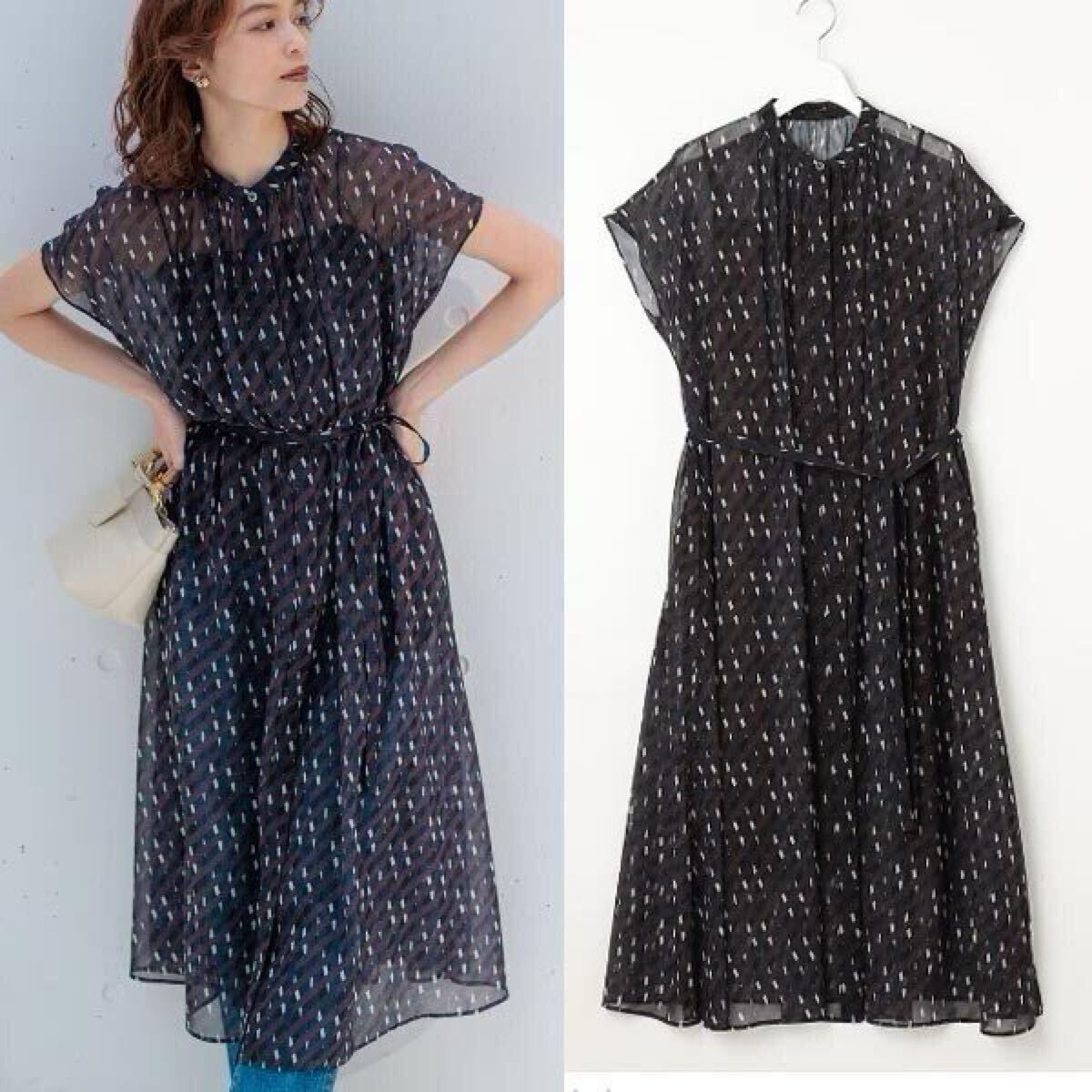 23区オリジナルプリントを効かせた、ほんのり透け感のある大人ワンピース