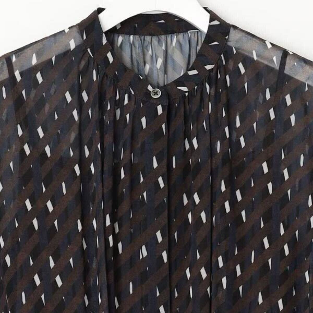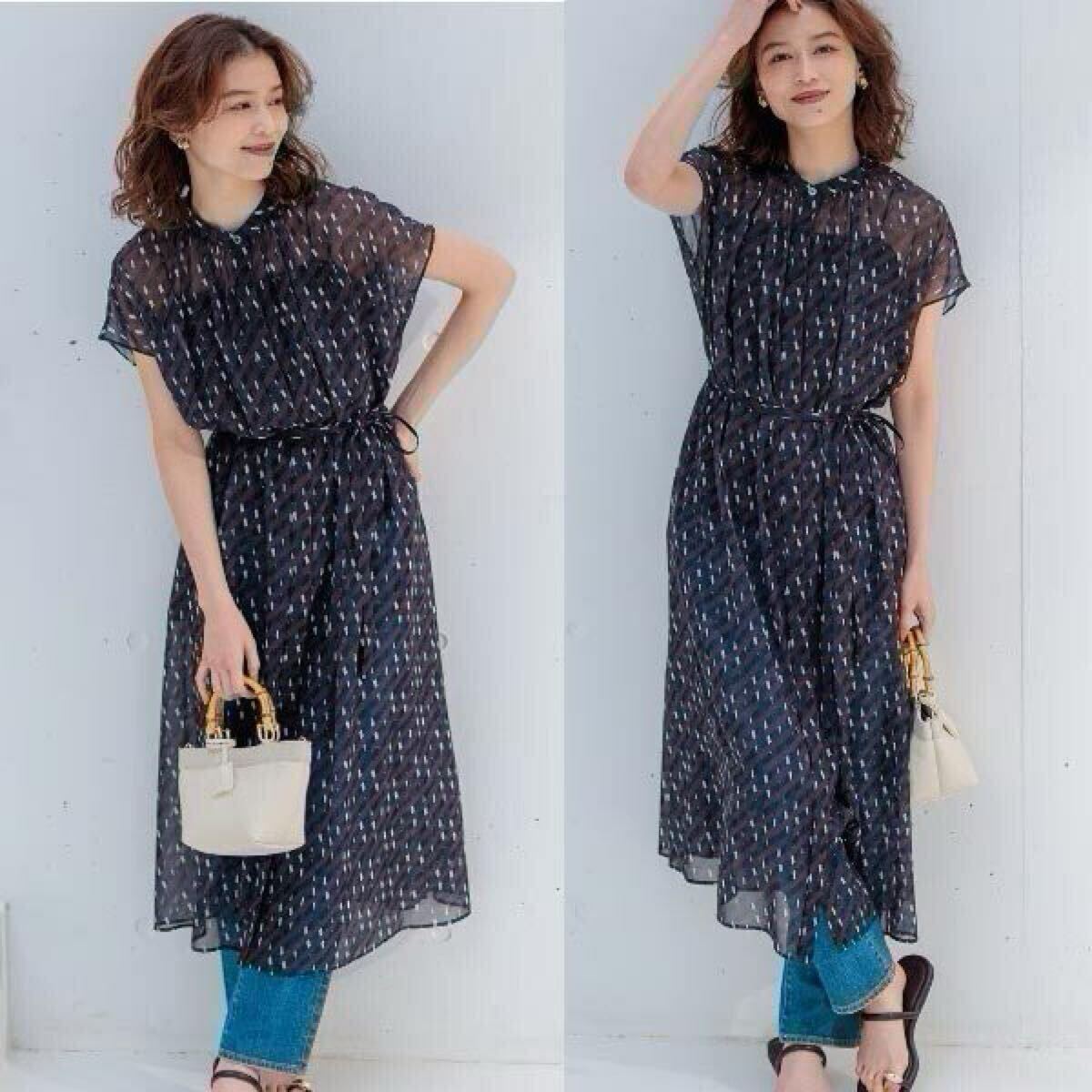 優しい透け感のある素材感が魅力のプリントシャツワンピース。