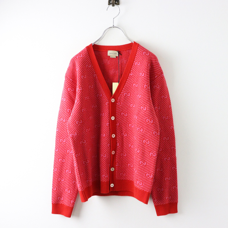 未使用 JPタグ 2021 グッチ GUCCI 638323 チルドレンズ GGストライプジャガード Vネックカーディガン 12/レッド ウール【2400014488708】