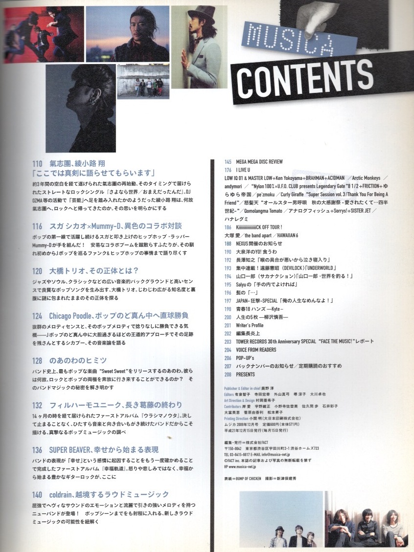 雑誌MUSICA/ムジカ 2009年12月号♪表紙&特集:BUMP OF CHICKEN/バンプ・オブ・チキン 藤原基央♪アジカン/レミオロメン/flumpool/MUCC♪