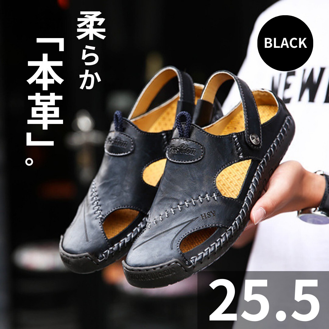 Product name: サンダル メンズ レザー 2way 本革 おしゃれ 柔らかい 滑り止め 革靴 ブラック 25.5