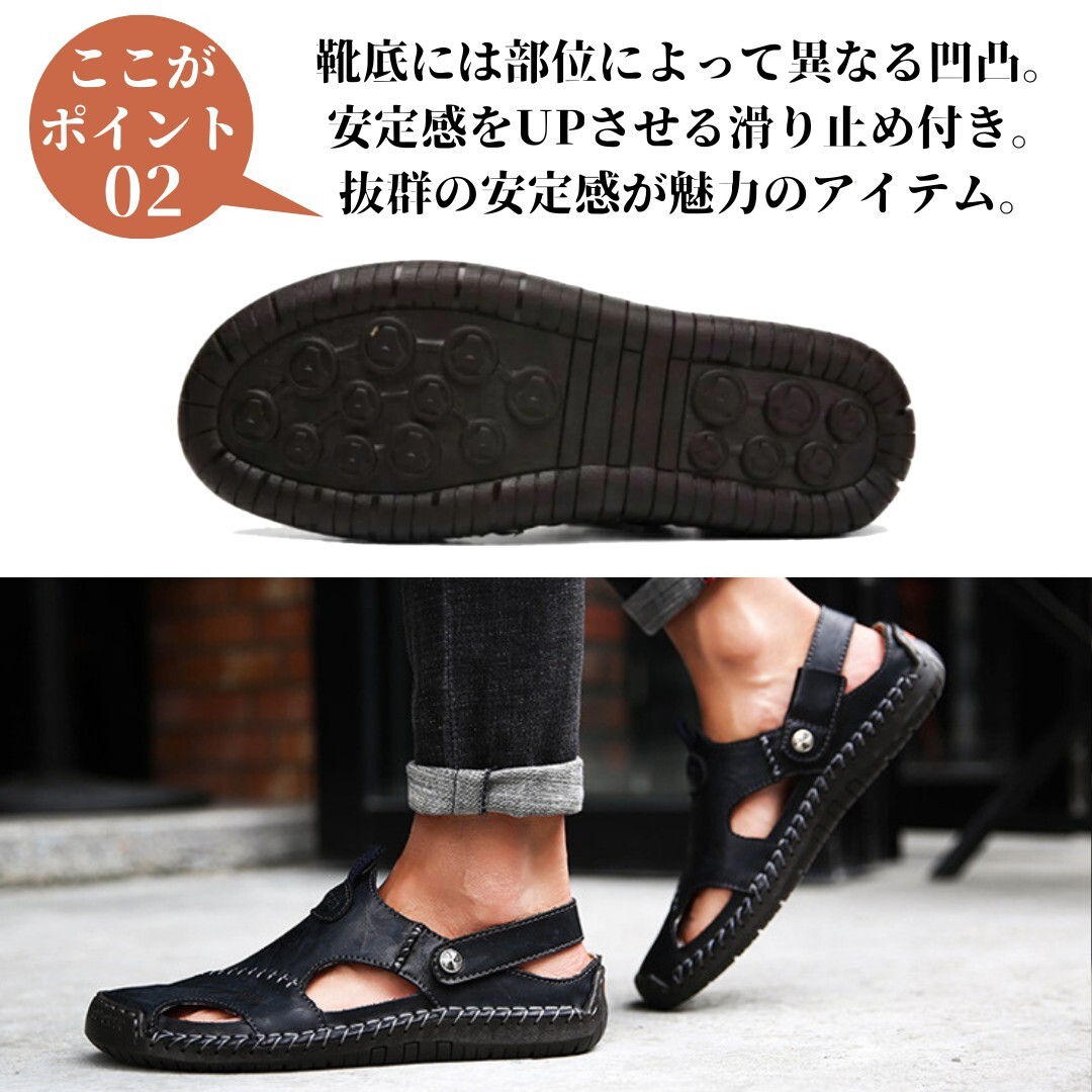 サンダル メンズ レザー 2way 本革 おしゃれ 柔らかい 滑り止め 革靴 ブラック 25.5