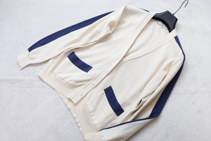 Product name: 90s ヴィンテージ Christian Dior SPORTS ディオール 女性用 コットン ニット カーディガン M アイボリー系/ネイビー