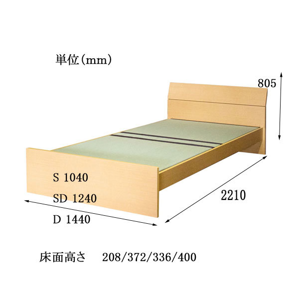 Product name: 北欧スタイル 畳ベッド シングルサイズ 床面高さ調整可能 タタミベッド