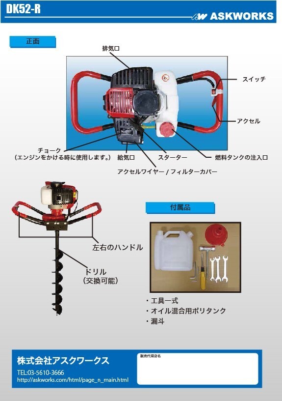 Product name: エンジン穴掘り機 1年保証 お好きなサイズのドリル1本付き エンジンオーガー 52CC アースオーガ アスクワークス 新品 動作確認済み