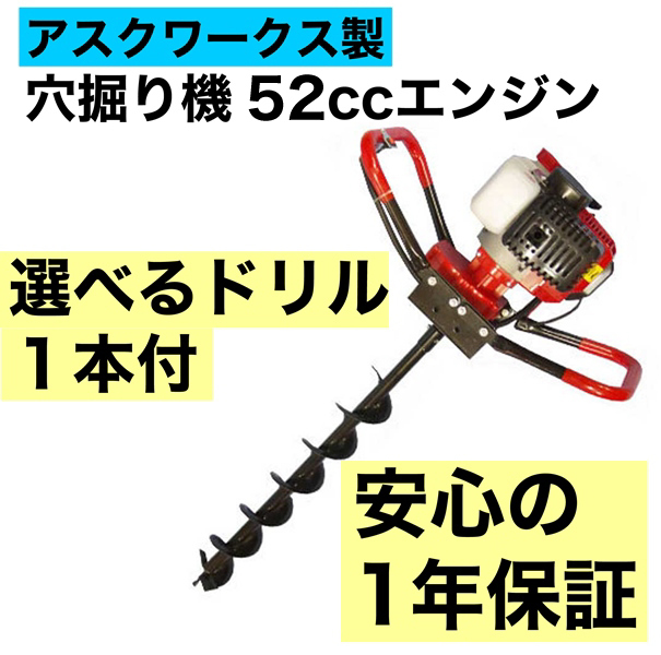 エンジン穴掘り機 1年保証 お好きなサイズのドリル1本付き エンジンオーガー 52CC アースオーガ アスクワークス 新品 動作確認済み