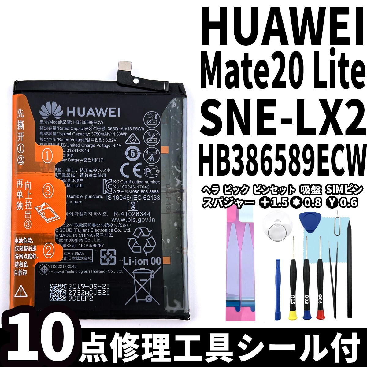 国内即日発送!! 純正同等新品!! HUAWEI Mate20 lite バッテリー HB386589ECW SNE-LX2 電池パック交換 内蔵battery 両面テープ 修理工具付