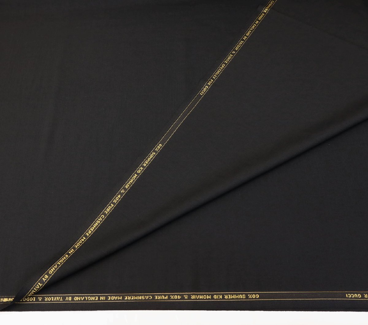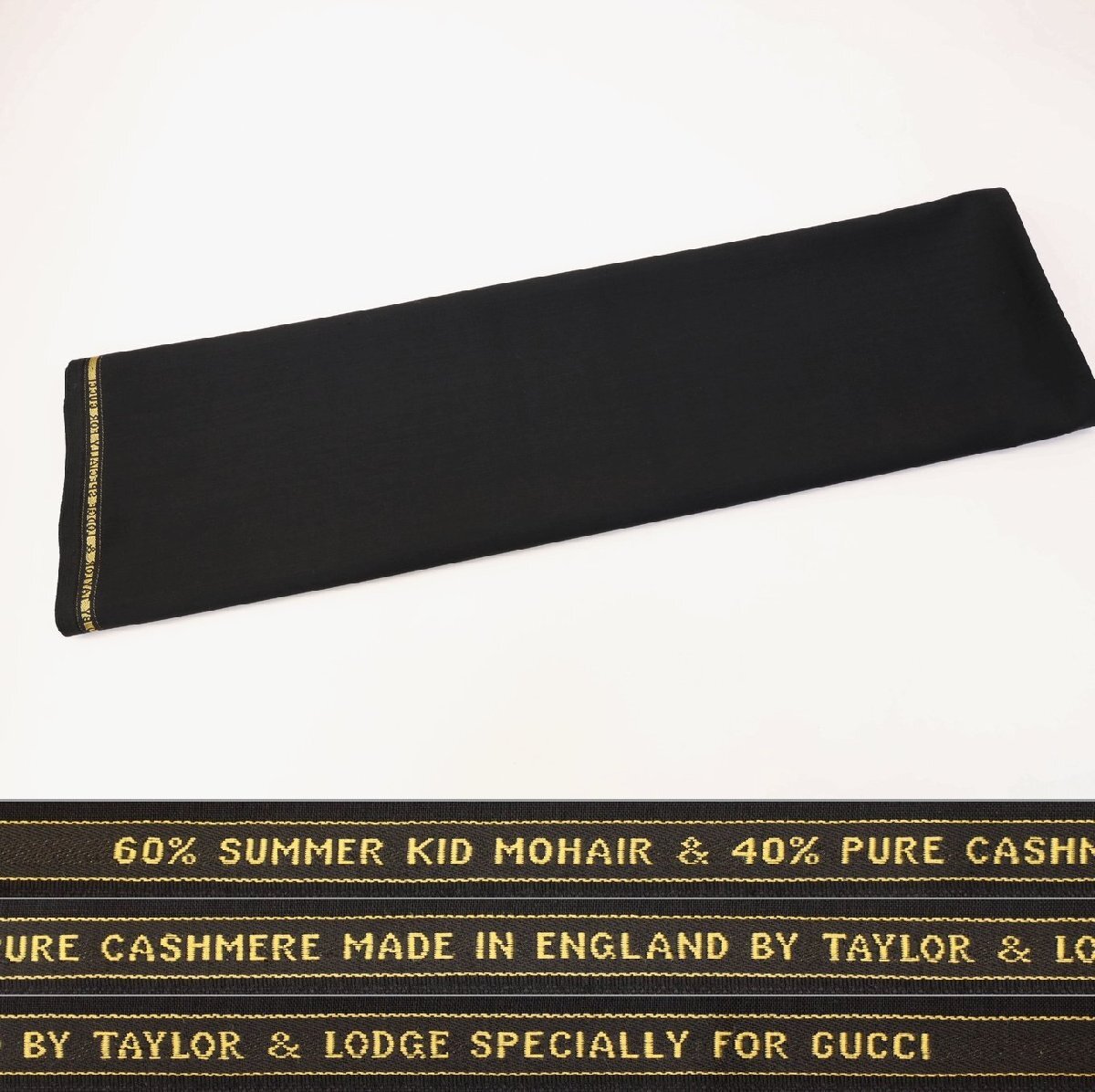 ●訳有・英国製テーラーロッジ社が「GUCCI グッチ」のために作った世界最高級60%skモヘア&40%カシミア・定番黒無地・長さ3.3m