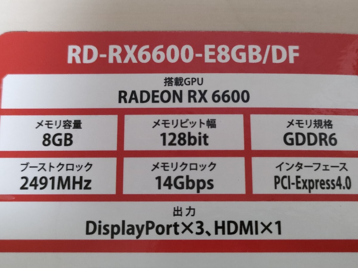 Product name: AMD 玄人志向 Radeon RX6600 8GB PowerColor 【グラフィックボード】