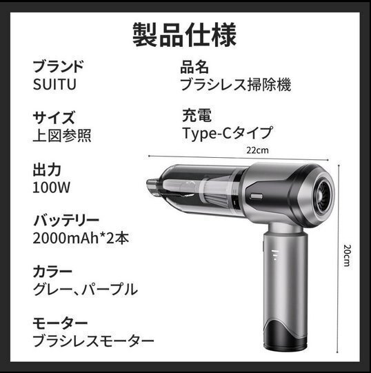 Product name: ハンディクリーナー 小型掃除機 32000pa 3段階調整可 コードレス ブラシレスモーター 強力吸引 車載掃除機 一台2役 Type-C充電 bhw0008