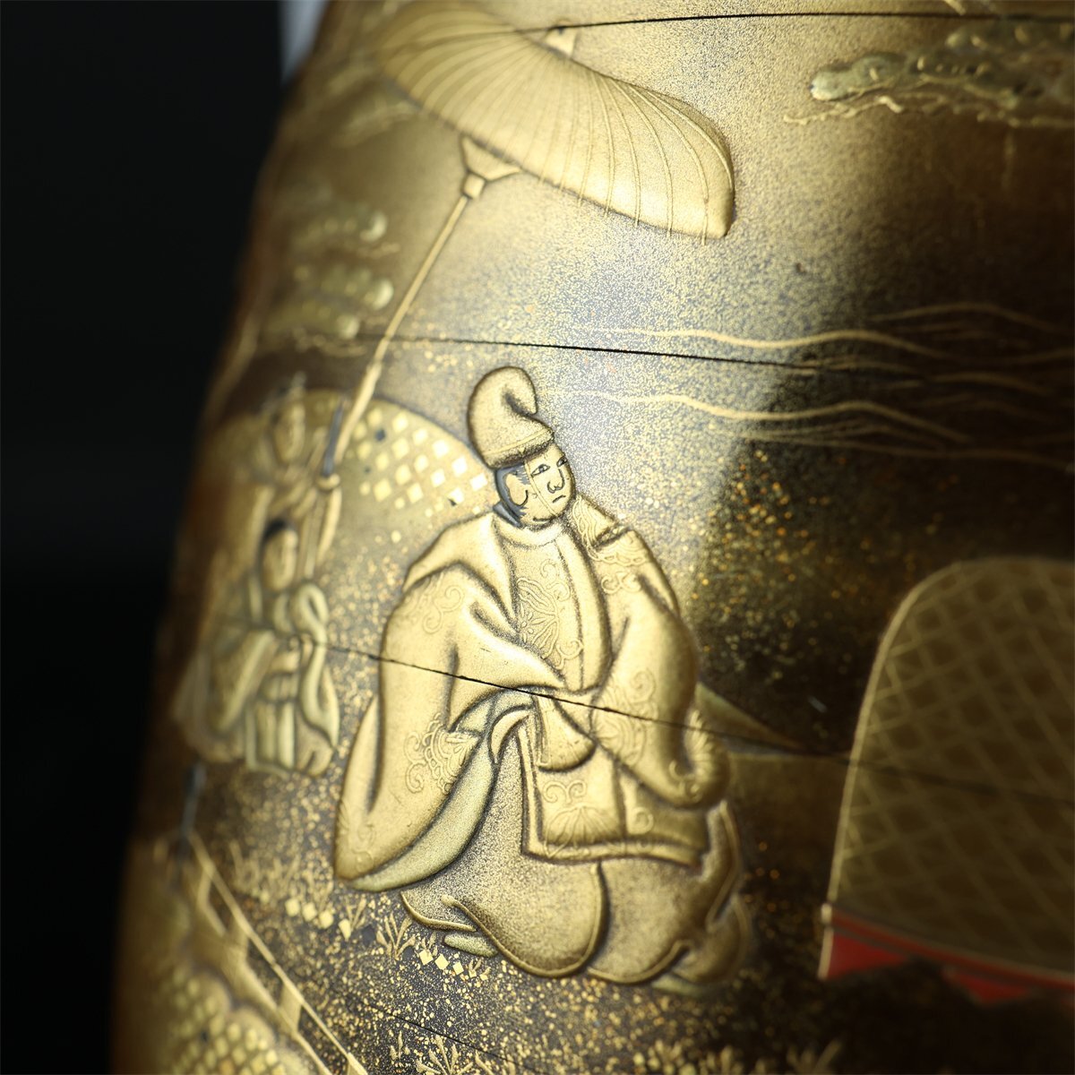 Product name: 【志】K1420 蒔絵印籠 江戸時代 松花斎作 鶴松 将軍図 五段 極細工 緒締 提げ物【^=