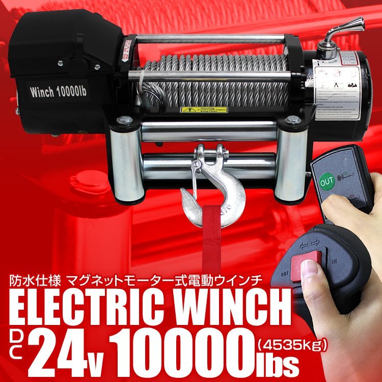 【数量限定セール】電動ウインチ 無線リモコン付属 最大牽引 10000LBS 4537kg DC24V 電動 ウインチ 引き上げ機 クロカン ダートラ 防水仕様