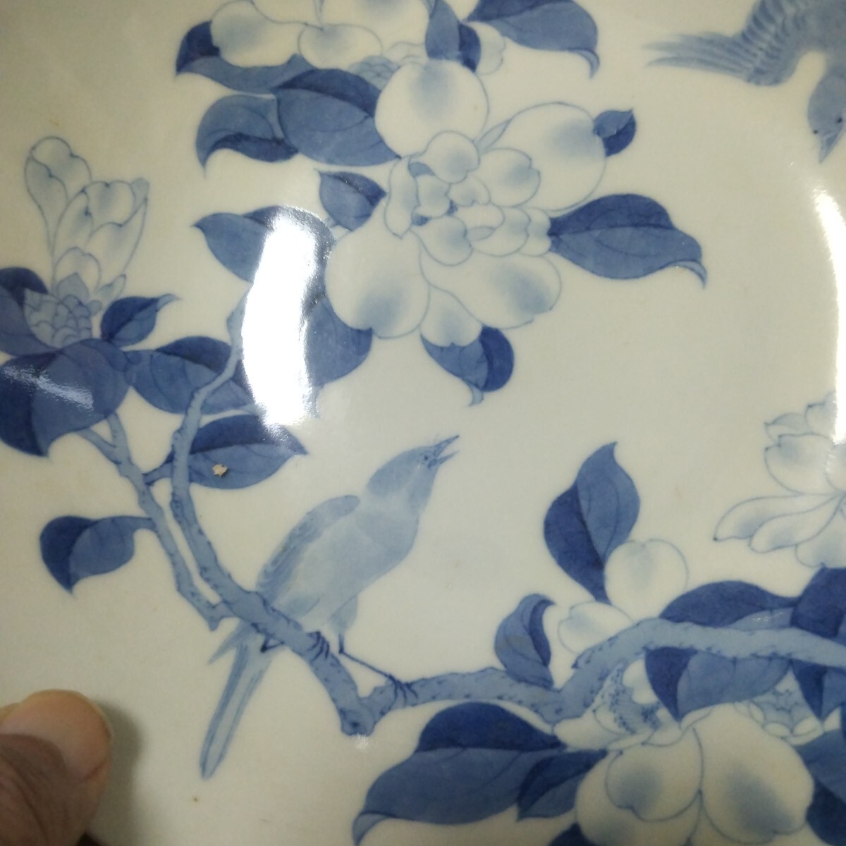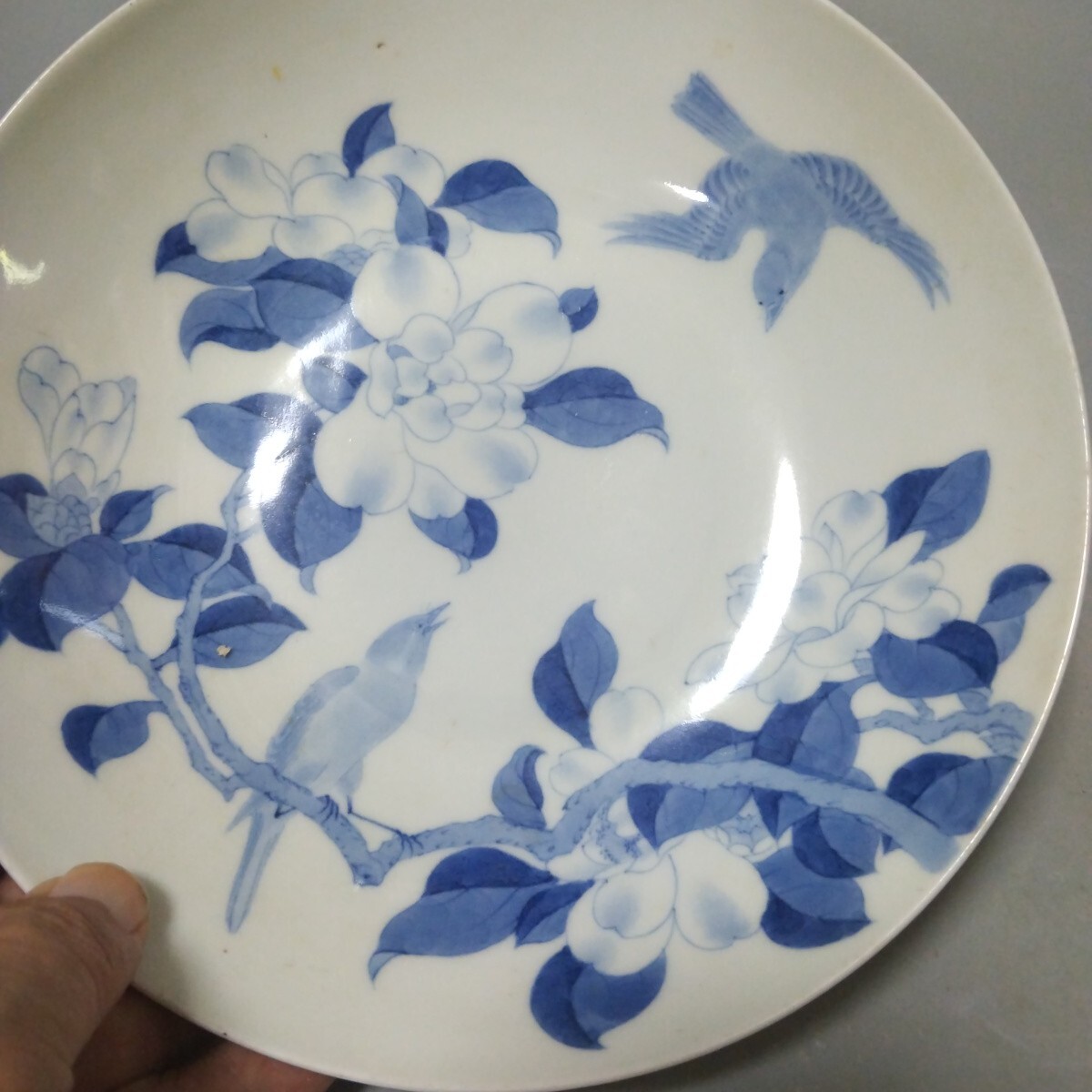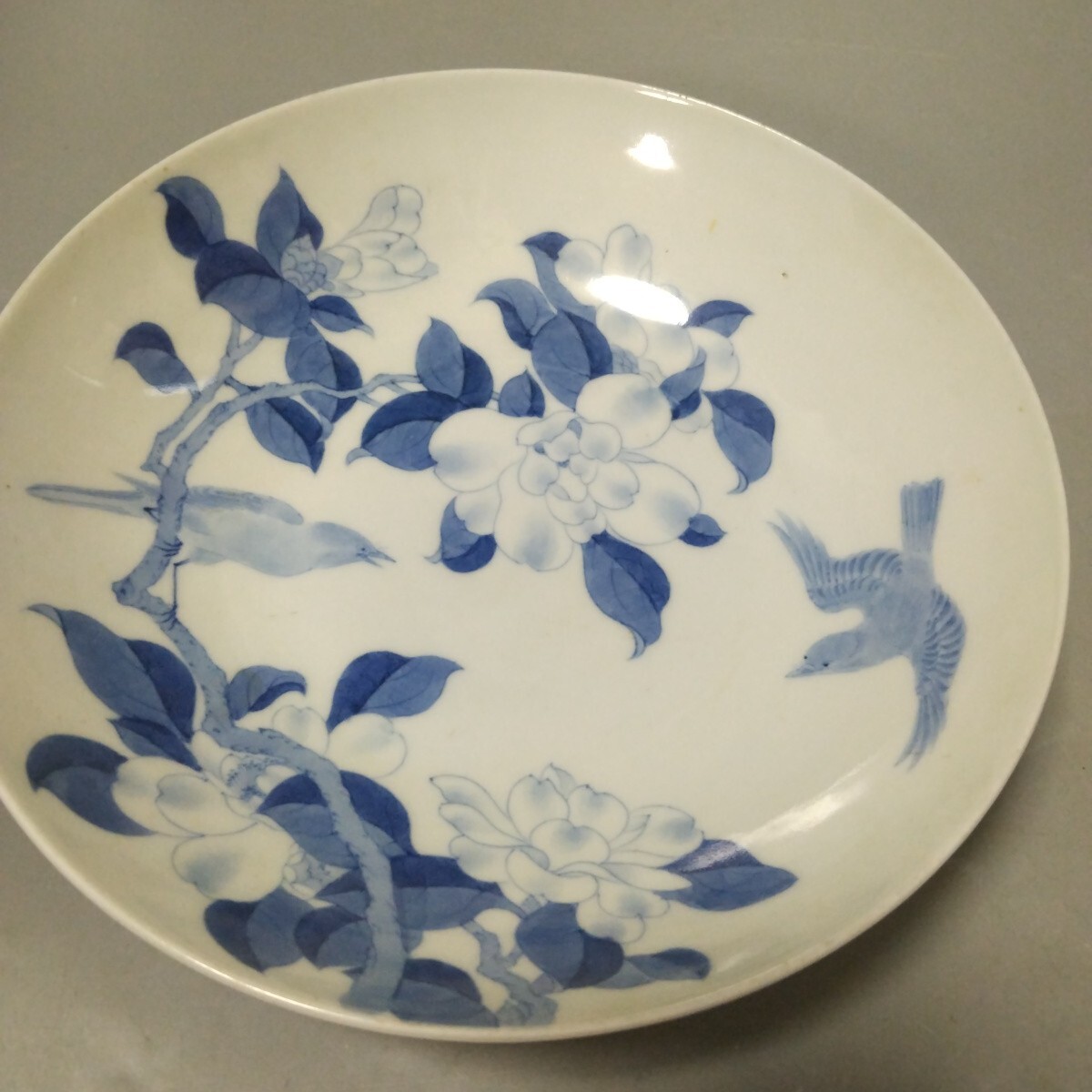Product name: 鍋島染付花に鳥図中皿 江戸後期