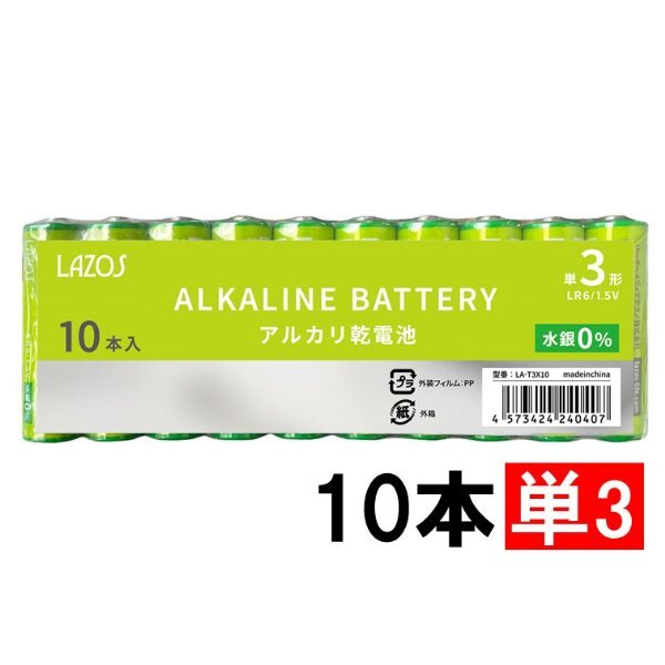 Product name: 新品 LAZOS 単3形 アルカリ乾電池 10本 LA-T3X10
