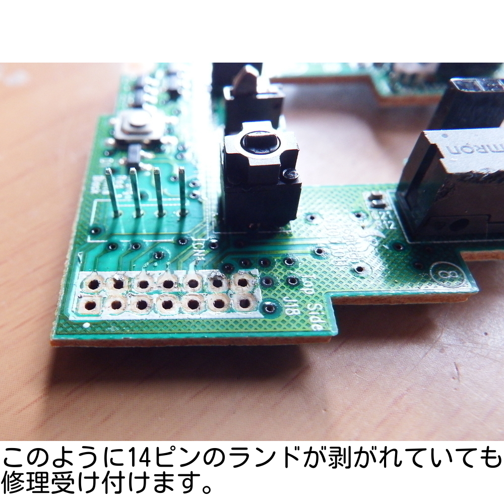 ※ご自分で分解、修理されたことがあってもスイッチ以外が正常に動作するのであれば承ります。 14ピン部分やスイッチ部分のパターン/ランドが剥がれてしまった、ホイールクリックのバネをなくしてしまったなどの場合でも承ります。