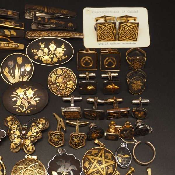 Product name: (IZM0801) 1円 象嵌 アクセサリー 大量セット ループタイ ペンダントトップ イヤリング ブローチ 指輪 等 まとめて