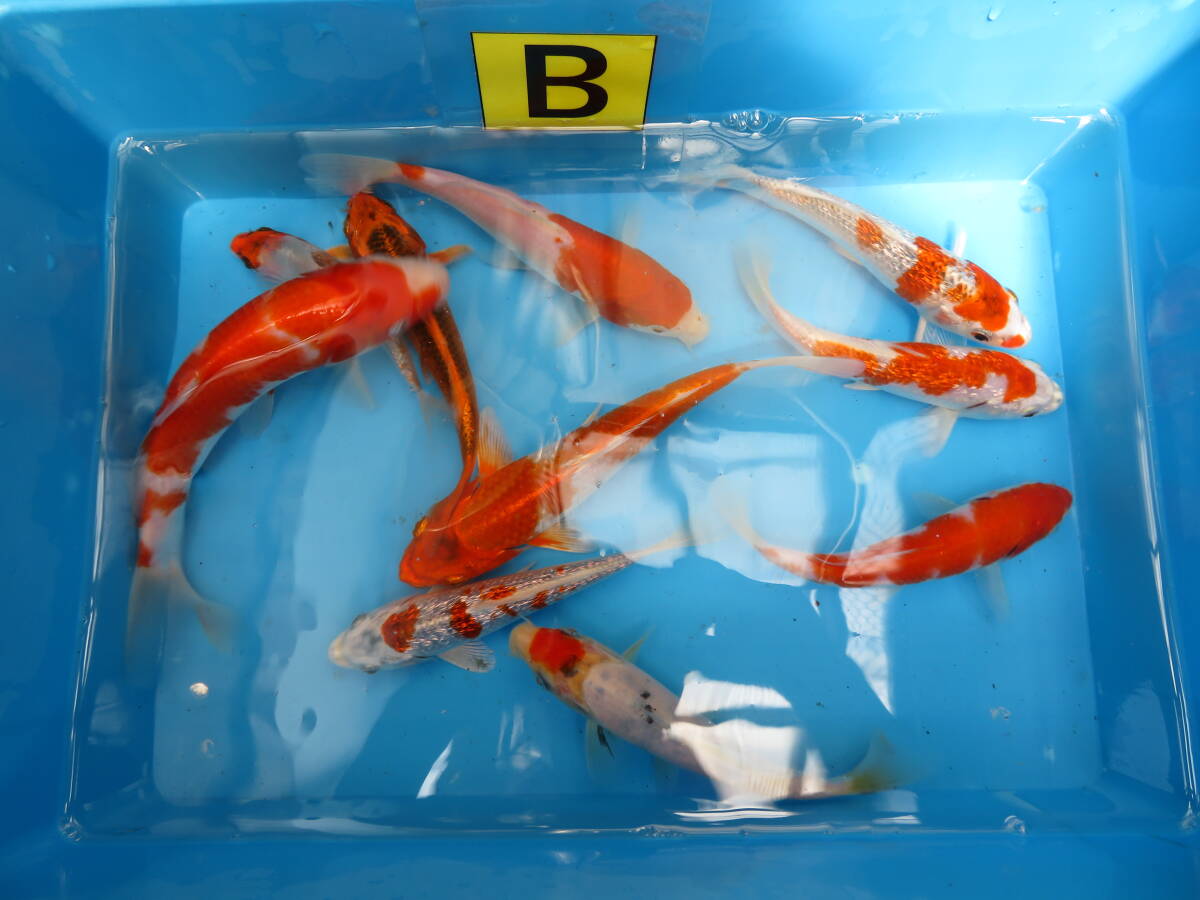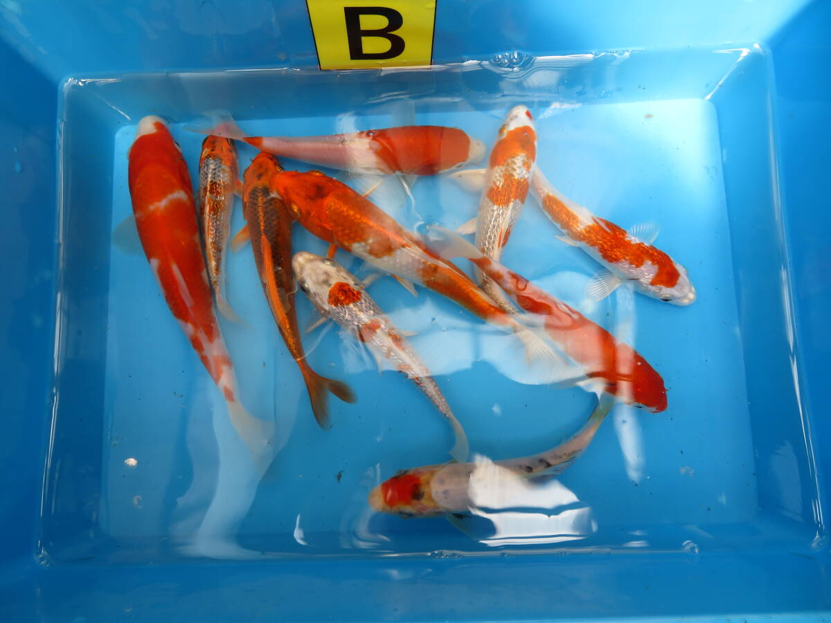 内容は 紅白、三色、孔雀、銀鱗光物  ミックス 合計 10尾です。サイズはおおよそ16cm~20cm です。