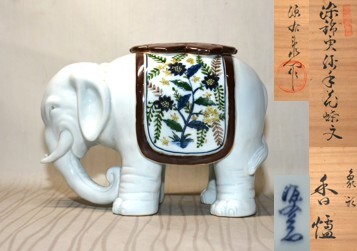 Product name: 76◆初荷です ◆茶道具 舘林源右衛門 染錦更紗手花蝶文象形香爐 希少品 ◆共箱 未使用美品 良い作りです 是米木窯