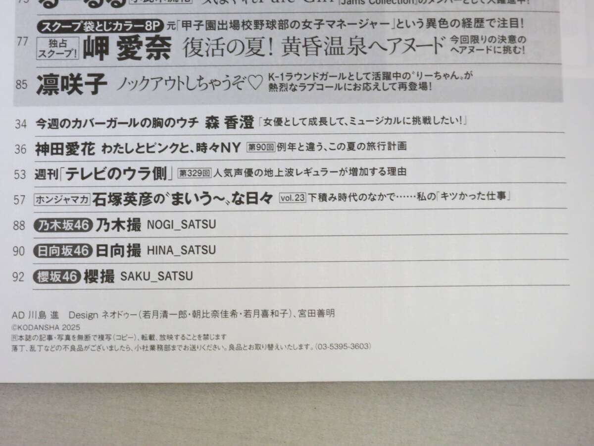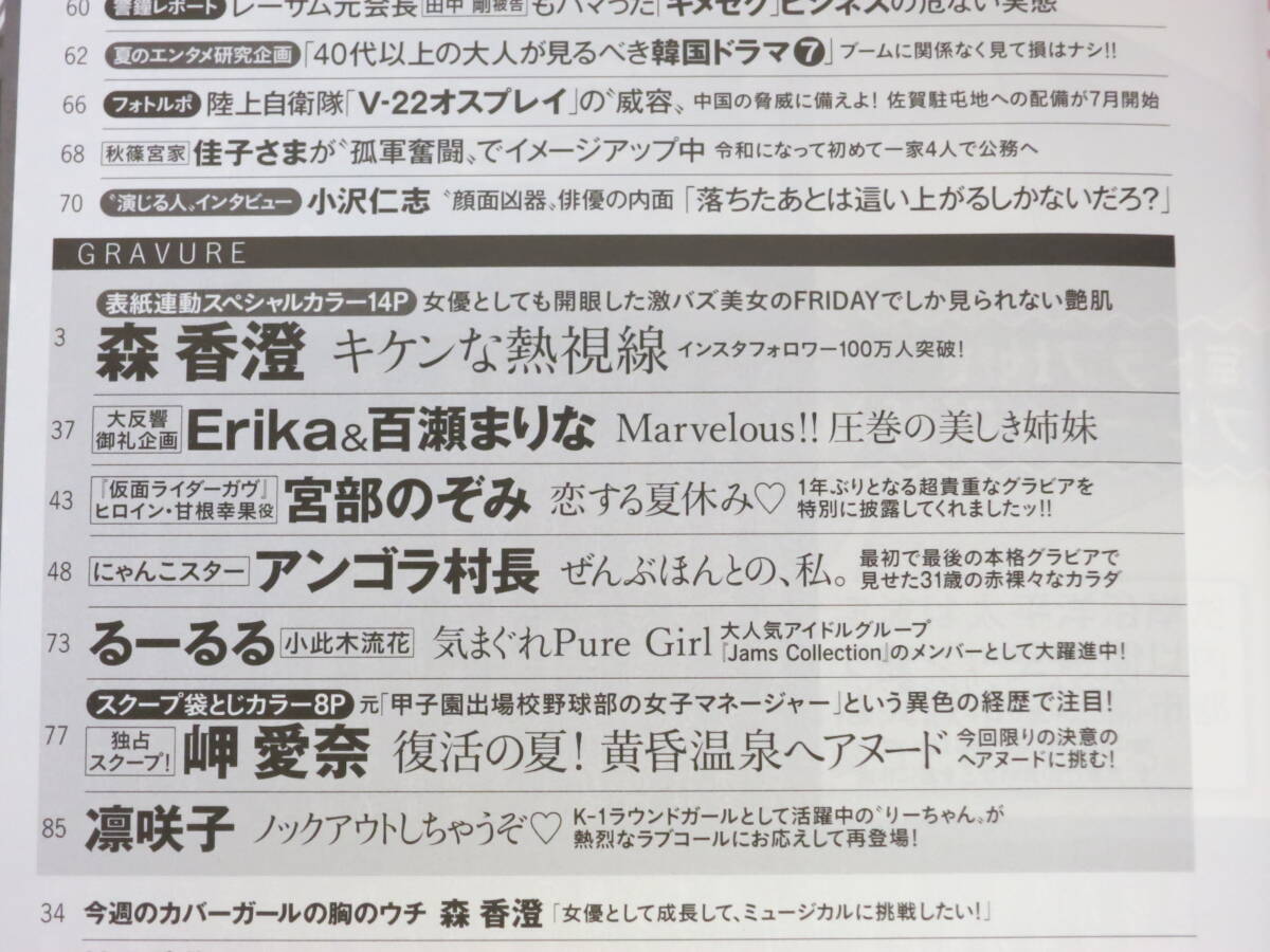 FRIDAY フライデー 2025年8月1日号 グラビア 森香澄 Erika&百瀬まりな 宮部のぞみ アンゴラ村長 るーるる 岬愛奈 凛咲子