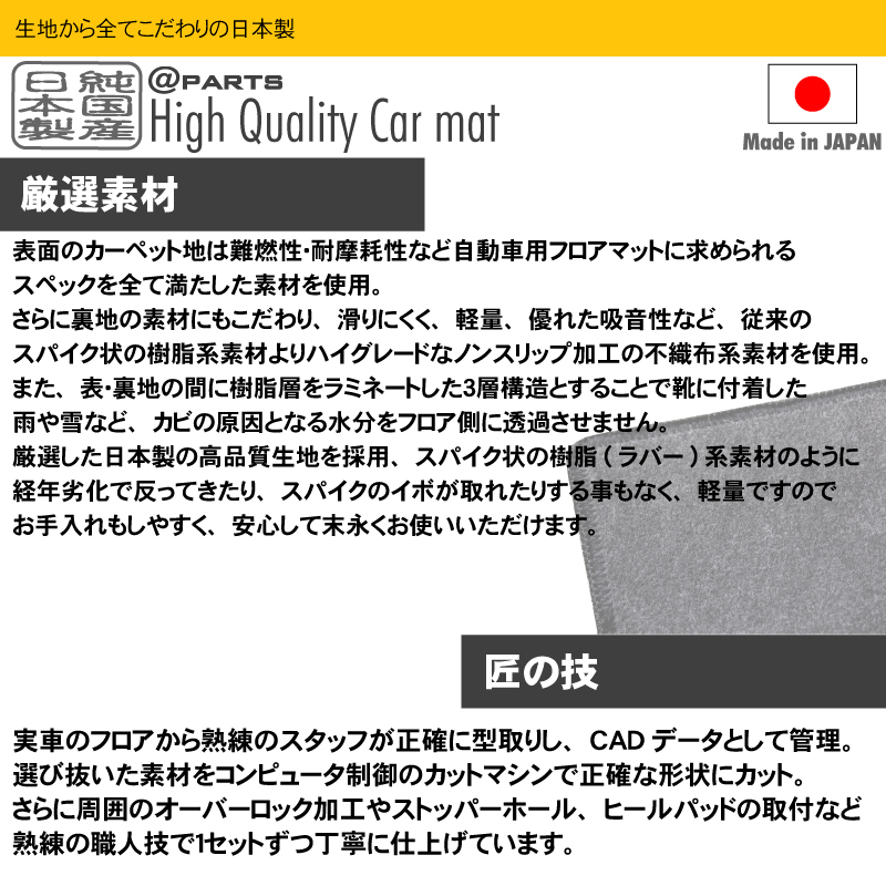各車種専用タイプでそれぞれの車種のフロア形状に合わせて製作しておりますのでオーダー品のようにジャストフィット。