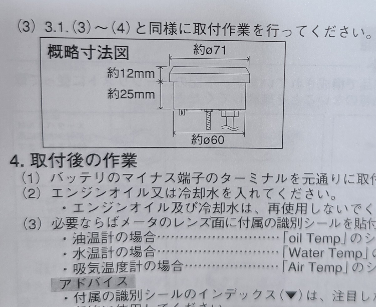 メーター本体の直径は約60mmタイプです。
