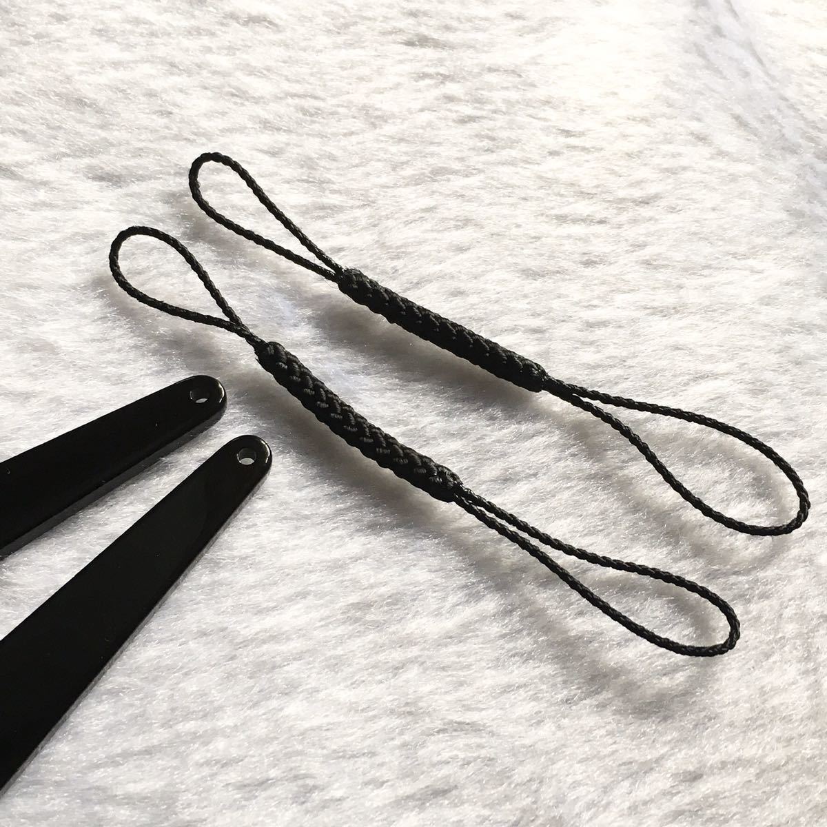 Product name: (送料無料)帯飾りプレート&根付け紐 2本ずつセット(ブラックプレート&黒紐)