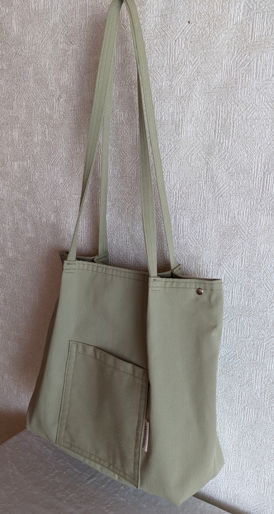 キャンバス生地 ポリコットン  内ポケット1個   外ポケット1個   両サイドにバネホック付き