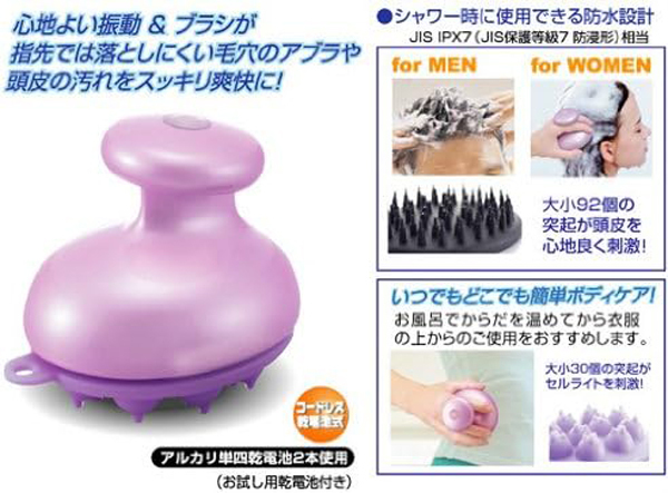 シャンプー時に頭皮を洗浄。