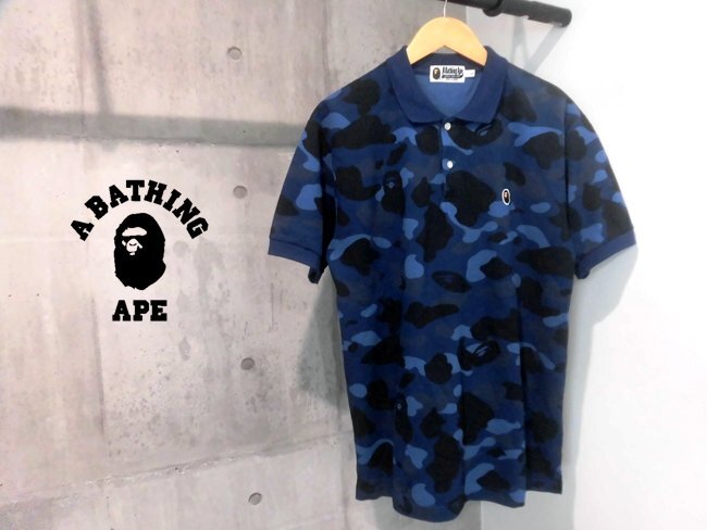 Product name: A BATHING APE/ア ベイシングエイプ/エイプ/猿迷彩 半袖 ポロシャツ L/1stカモ 猿顔 カモフラ カノコシャツ/1stcamo/紺/メンズ/BAPE ベイプ