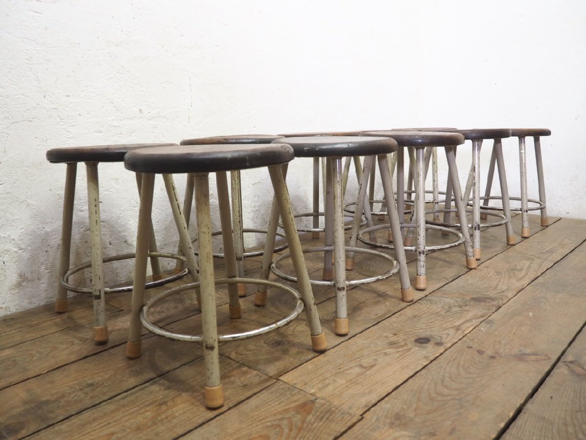 ビンテージの古い鉄脚スツール、4脚セットです。